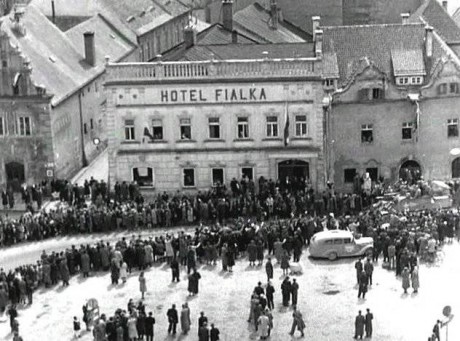 1945 Příjezd amerických tanků na sušické náměstí. Nejednalo se o osvobození, ale o obsazení západních Čech