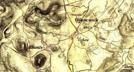 Staré mapy Čejkov,Zbynic a okolí před 200 a 300 léty